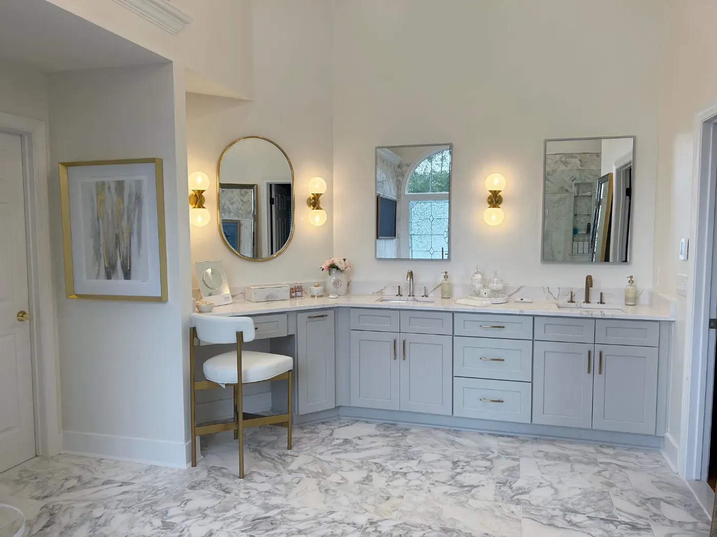 Details make the difference. We carefully paint trim, baseboards, doors, and cabinetry using the right finishes for each surface—ensuring durability and a cohesive look throughout your bathroom.